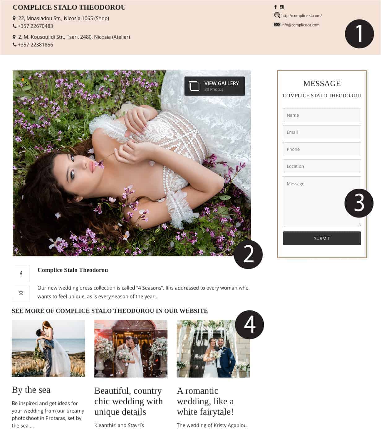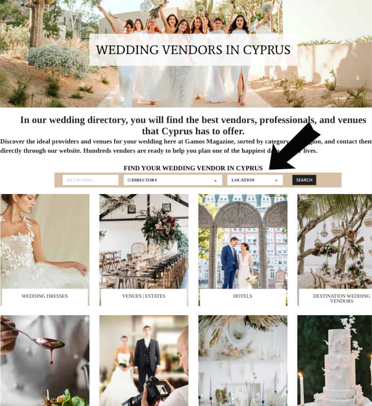 The website has a special section to attract couples that are interested in getting married in Cyprus, that is designed to also promote for vendors that offer their services for destination weddings.
