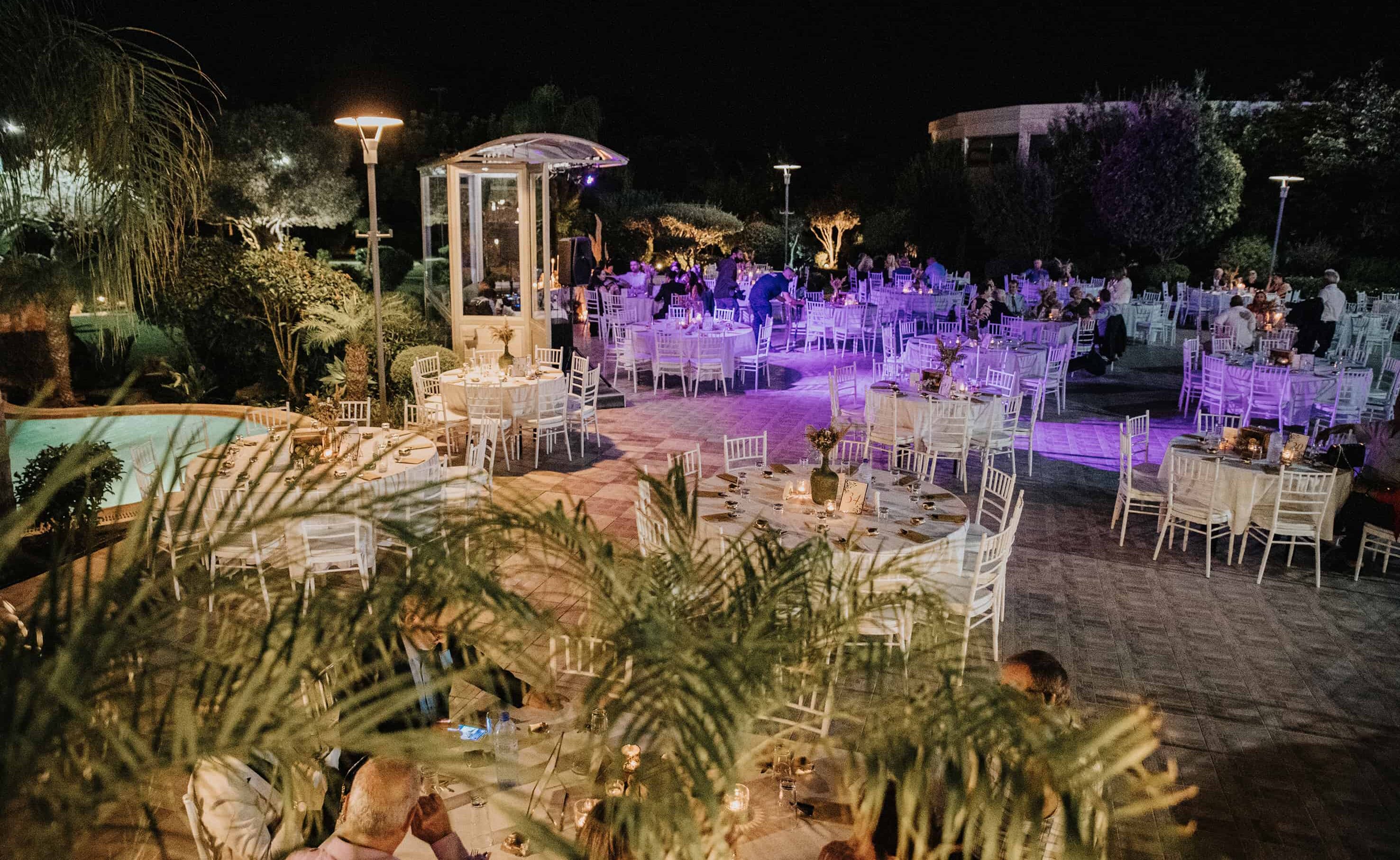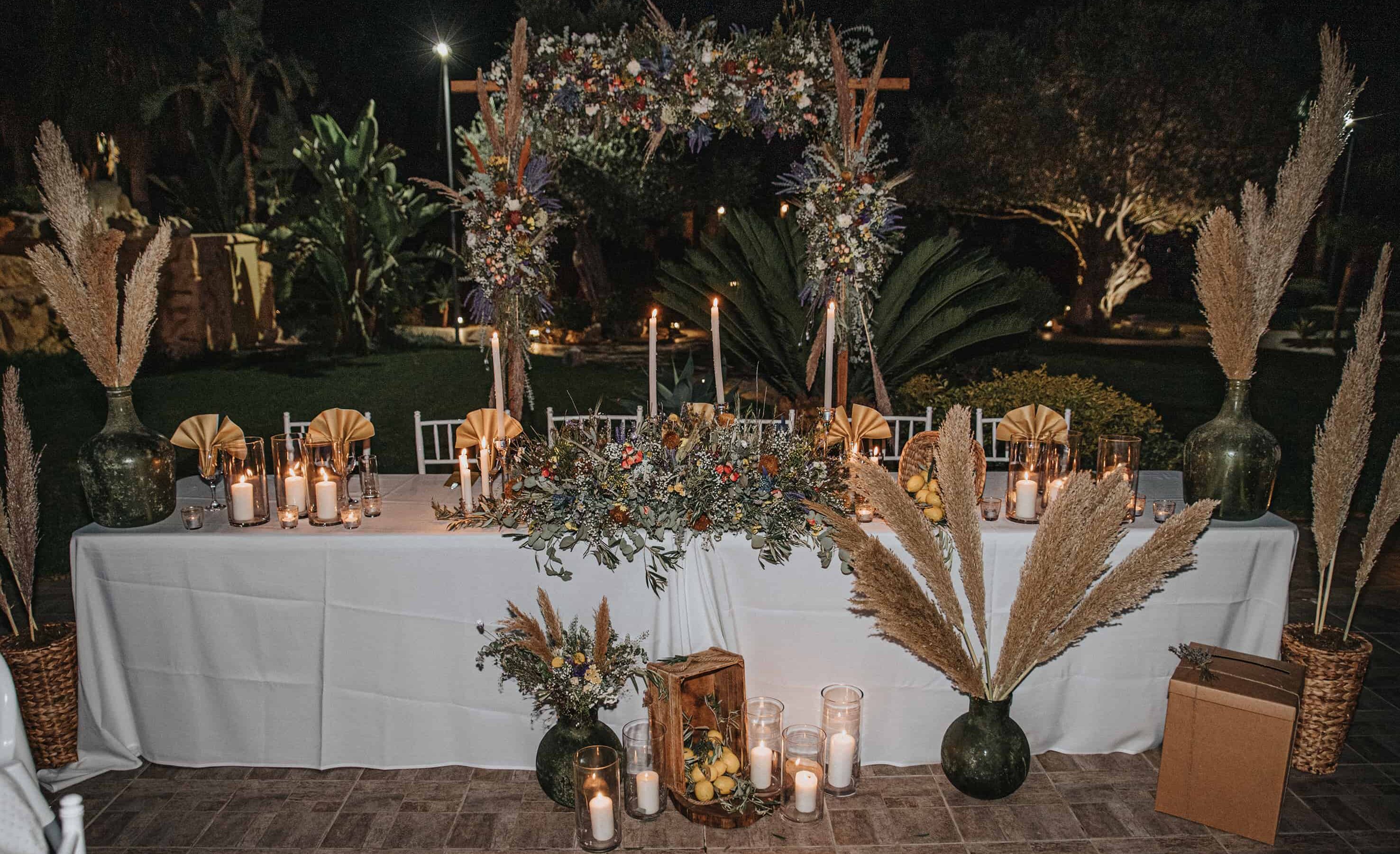 The colour palette was in pastel tones and, to highlight the wedding theme, dried flowers, baskets, wooden furniture, olive leaves and lemons were used.