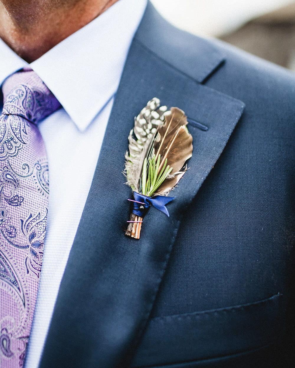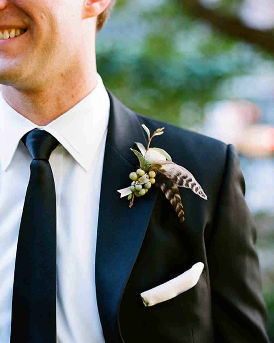 Αν πάλι θέλετε να πρωτοτυπήσετε τότε σκεφτείτε έξω από το πλαίσιο και δημιουργήστε μπουτονιέρες με εντυπωσιακά φτερά. Ιδανικά θα μπορούσε και η δική σας νυφική εμφάνιση να έχει μία αντίστοιχη διακριτική πινελιά, όπως για παράδειγμα στο headpiece που θα επιλέξετε ή ακόμα και στη νυφική ανθοδέσμη.