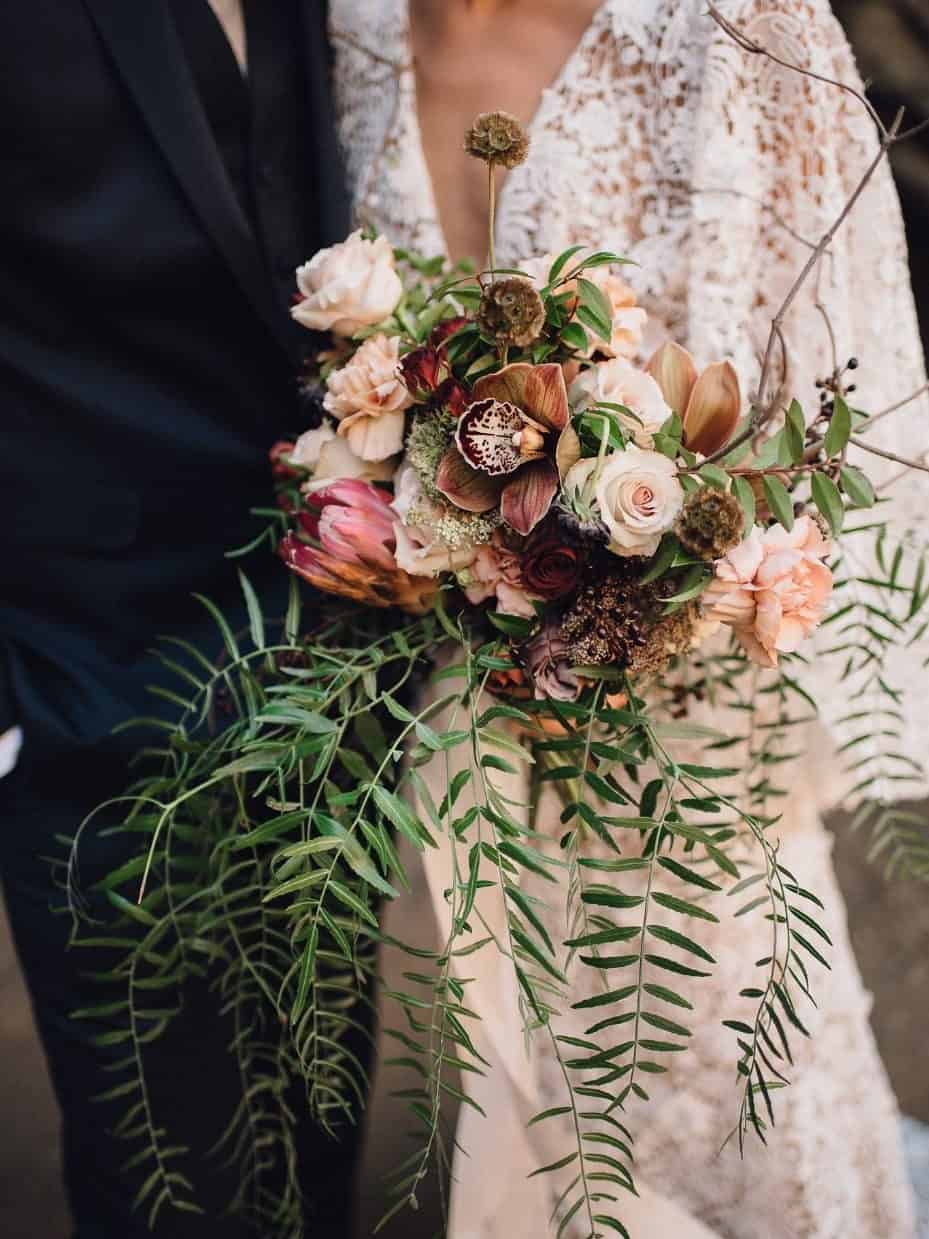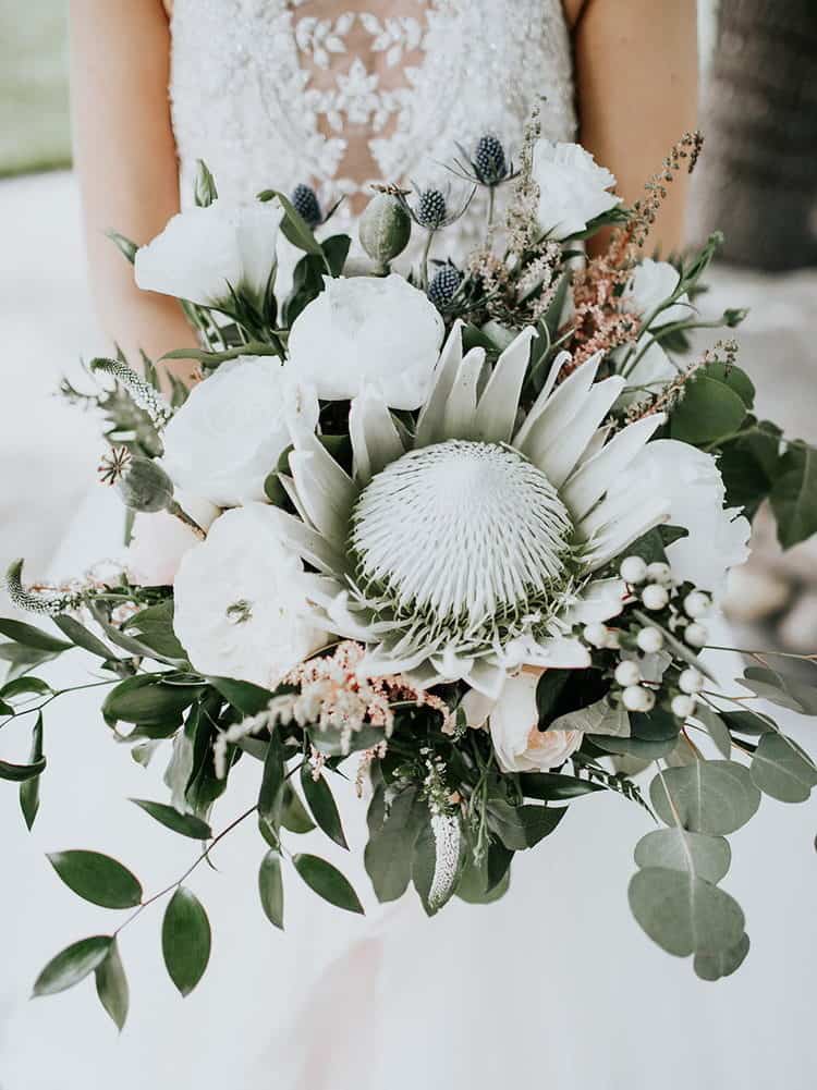 Όσο για τους χρωματισμούς, ο κατεξοχήν συνδιασμός λευκού-πράσινου συνεχίζει να είναι παρών, παράλληλα όμως οι γήινοι τόνοι έχουν έρθει για να μείνουν. Τα αποξηραμένα λουλούδια, τα pampas grass, τα παχύφυτα αλλά και τα λουλούδια του αγρού είναι μερικά μόνο από τα λουλούδια που μπορείτε να χρησιμοποιήσετε για τη νυφική σας ανθοδέσμη το 2019.