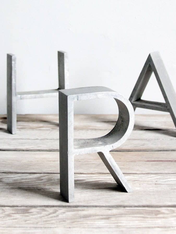 Μία από τις πιο διαδεδομένες χρήσεις του διακοσμητικού τσιμέντου είναι τα μονογράμματα! Επιλέξτε το μέγεθος και τη γραμματοσειρά που σας ταιριάζει και φτιάξτε τα αρχικά σας, χρησιμοποιώντας τα μετά και στη διακόσμηση του σπιτιού σας!