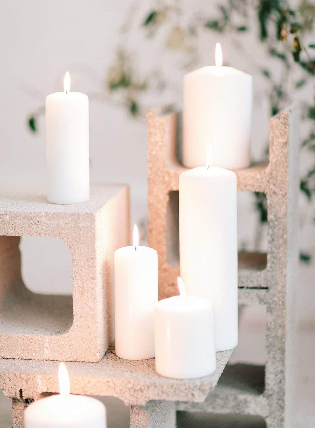 Τσιμεντένια κηροπήγια σε διάφορα σχήματα μπορούν να χρησιμοποιηθούν για τη διακόσμηση των τραπεζιών. Θυμηθείτε! Το τσιμέντο και οι αποχρώσεις του μπρούντζου ταιριάζουν απόλυτα!