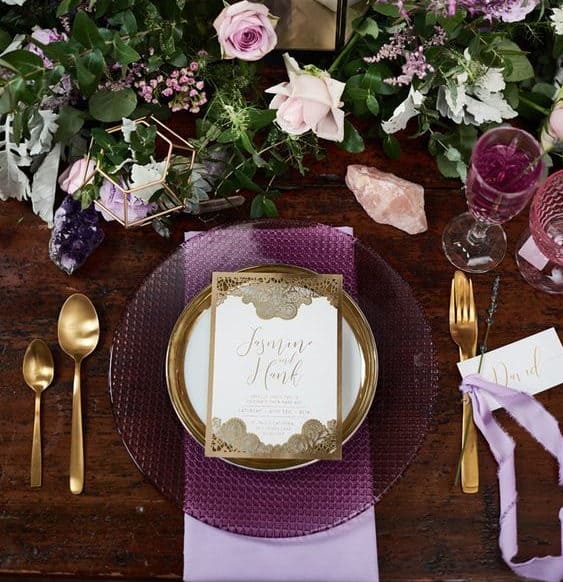 Τι θα λέγατε όμως, να βάλετε στο πρόγραμμα να δημιουργήσετε και όλο το mood του γάμου σας σε μοβ αποχρώσεις; Θα επιλέξετε μοβ ή λιλά λουλούδια, για να στολίσουν την εκκλησία, και τα τραπέζια για το δείπνο. Επικεντρωθείτε στις απλοϊκές βιολέτες, στην αρωματική πασχαλιά, τις πανέμορφες τουλίπες, βουκαμβίλιες ή τα αριστοκρατικά τριαντάφυλλα, για να φτιάξετε και τη νυφική ανθοδέσμη σας, που θα εκπέμπει μια διακριτική αίσθηση πολυτέλειας.