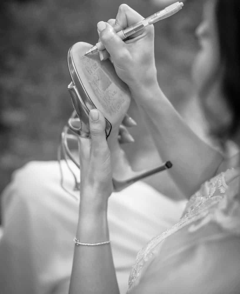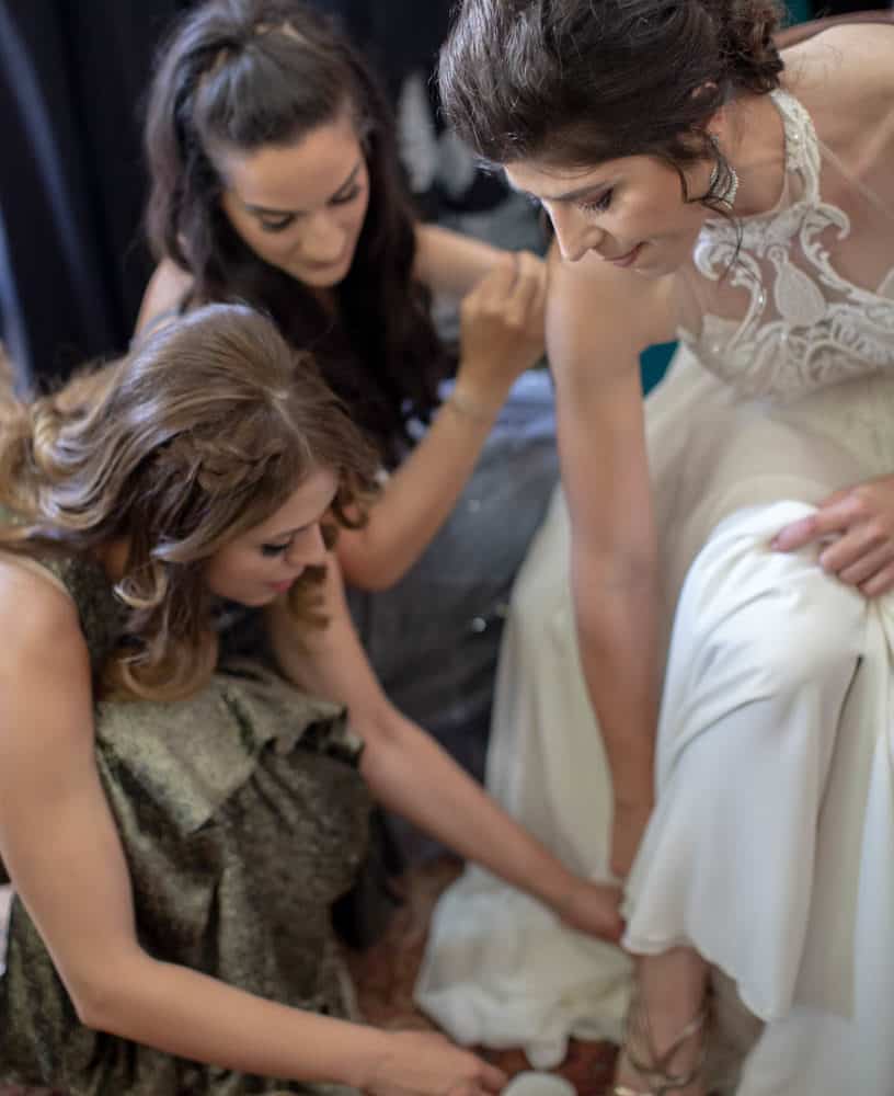 “Δεν ήμουν από τα κορίτσια που ονειρεύονταν το νυφικό τους, δεν μου άρεσαν τα πριγκιπικά νυφικά με πολλά φουρώ.. αλλά ούτε και τα στενά, glamour νυφικά..» μας εξομολογήθηκε η Αμαλία. Το νυφικό της το ερωτεύτηκε από την πρώτη ματιά, τη δεύτερη κιόλας φορά που επισκεπτόταν οίκο νυφικών. Ένα απλό νυφικό Muse by Berta, από τον οίκο Primalicia, με ξεχωριστό μπούστο και ανοιχτή πλάτη, της έκλεψε την καρδιά μόλις το δοκίμασε, και το έκλεισε την ίδια κιόλας μέρα!