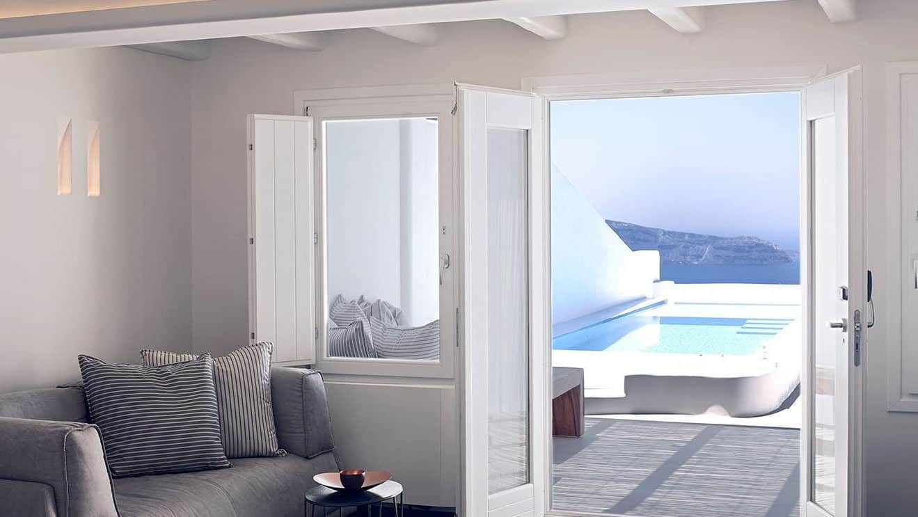 ΟΣΟ ΓΙΑ ΤΗ ΔΙΑΜΟΝΗ; Από τις πολλές επιλογές που έχετε δε θα μπορείτε να αποφασίσετε! Υπάρχουν εκπληκτικά γραφικά, λαξευμένα στους βράχους, αλλά συνάμα πολυτελή, ξενοδοχεία με φινετσάτες σουίτες και ιδιωτικές βίλες, όπου θ’ απολαύσετε άριστες υπηρεσίες και θερμή φιλοξενία. Από τα πιο αγαπημένα μου είναι οι Katikies στην Οία, το Chromata στο Ημεροβίγλι, οι Canaves στην Οία, το Cavo Tagoo στο Ημεροβίγλι και το Santo Maris Luxury Suites and Spa στην Οία.