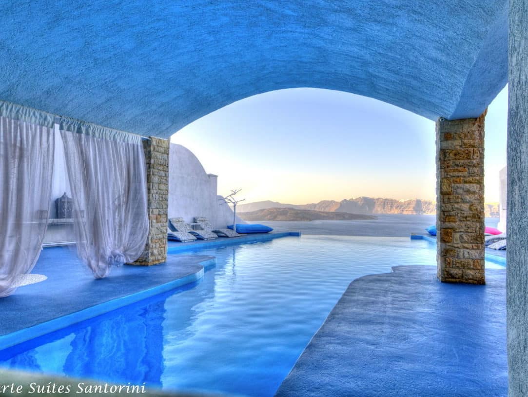 «Απέραντη η γαλάζια ένωση ουρανού και θάλασσας, που υποδέχεται τους επισκέπτες στη Σαντορίνη, το νησί της Astarte». Αυτό αναφέρεται χαρακτηριστικά στο site του boutique, all-suite καταφύγιου στη Σαντορίνη, που φέρει την ονομασία Astarte Suites και υπόσχεται να σας αποπλανήσει σε μια καινούρια εμπειρία αισθήσεων, πολυτέλειας και χαλάρωσης. Ένα μικρό ξενοδοχείο, με μόνο εννέα σουίτες, που μοιάζει περισσότερο με όνειρο που γίνεται τελικά πραγματικότητα. Η εκπληκτική θέα των καταγάλανων νερών του Αιγαίου και του ηφαιστείου θα σας εντυπωσιάσει από κάθε γωνιά αυτού του αμφιθεατρικά χτισμένου ξενοδοχείου.