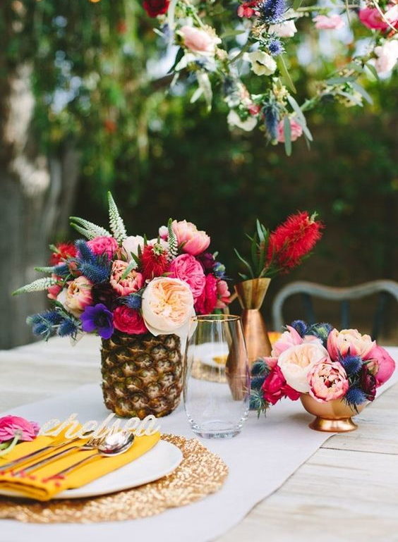 Pineapples create an exotic, summery effect when used as a centre piece.