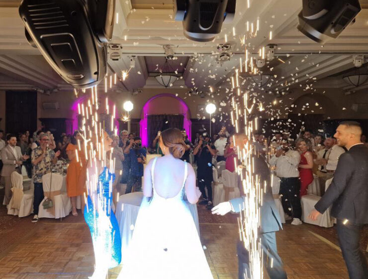 Quality sound and proper lighting from the best wedding professionals in Cyprus. Incredible lighting design with fairy lights, chandeliers, and many other options, as well as crystal-clear sound for a wedding reception with a dance floor to remember!