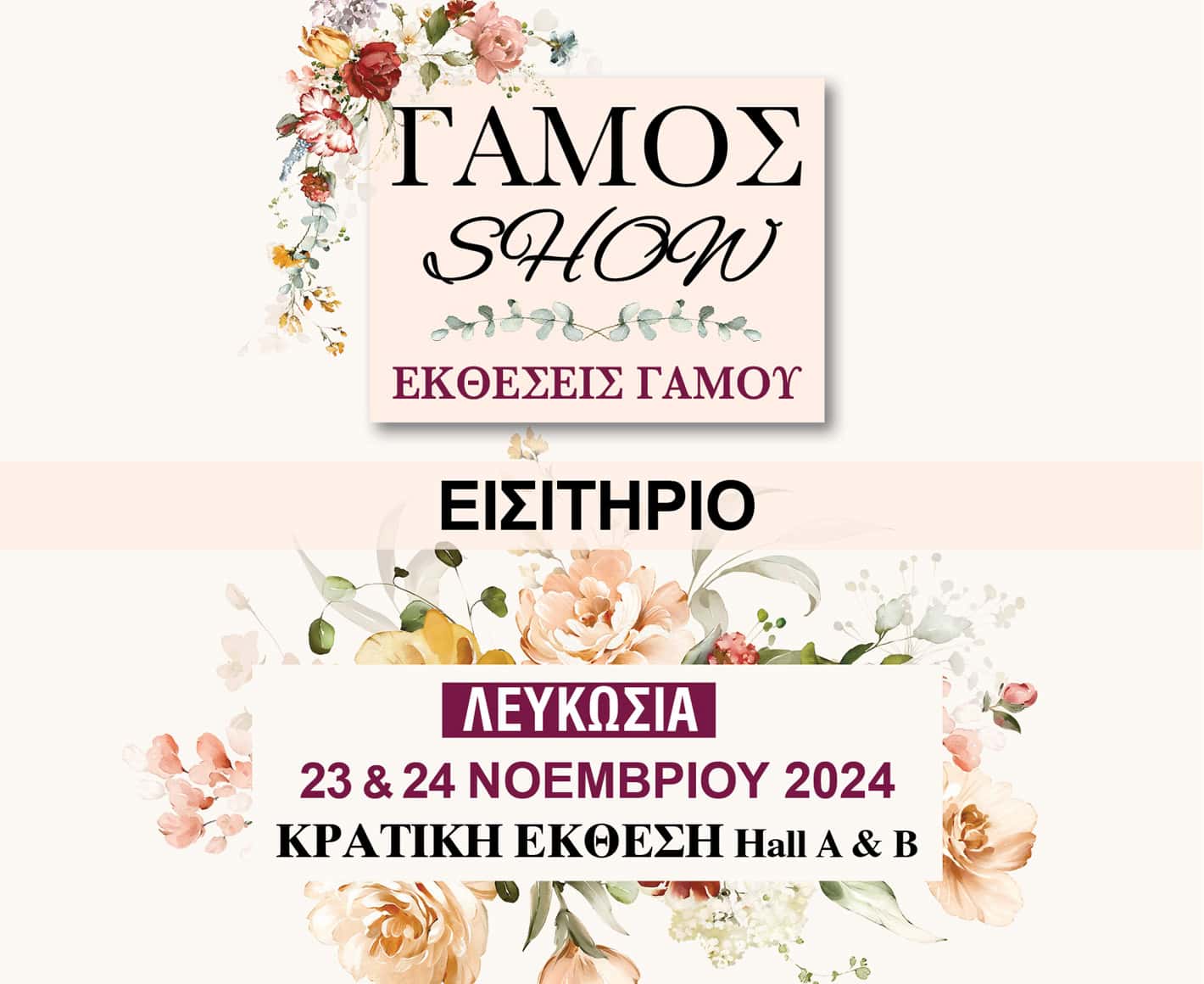 Επισκεφθείτε την έκθεσή μας στην Κρατική Έκθεση, τη μεγαλύτερη έκθεση γάμου που γίνεται στην Κύπρο, βρείτε ότι χρειάζεστε για το γάμο σας και παρακολουθήστε δωρέαν bridal fashion shows με τα ωραιότερα νυφικά και κοστούμια του 2025! Μπορείτε να βρείτε περισσότερες πληροφορίες και να δείτε όλους τους εκθέτες στην ιστοσελίδα των εκθέσεων.